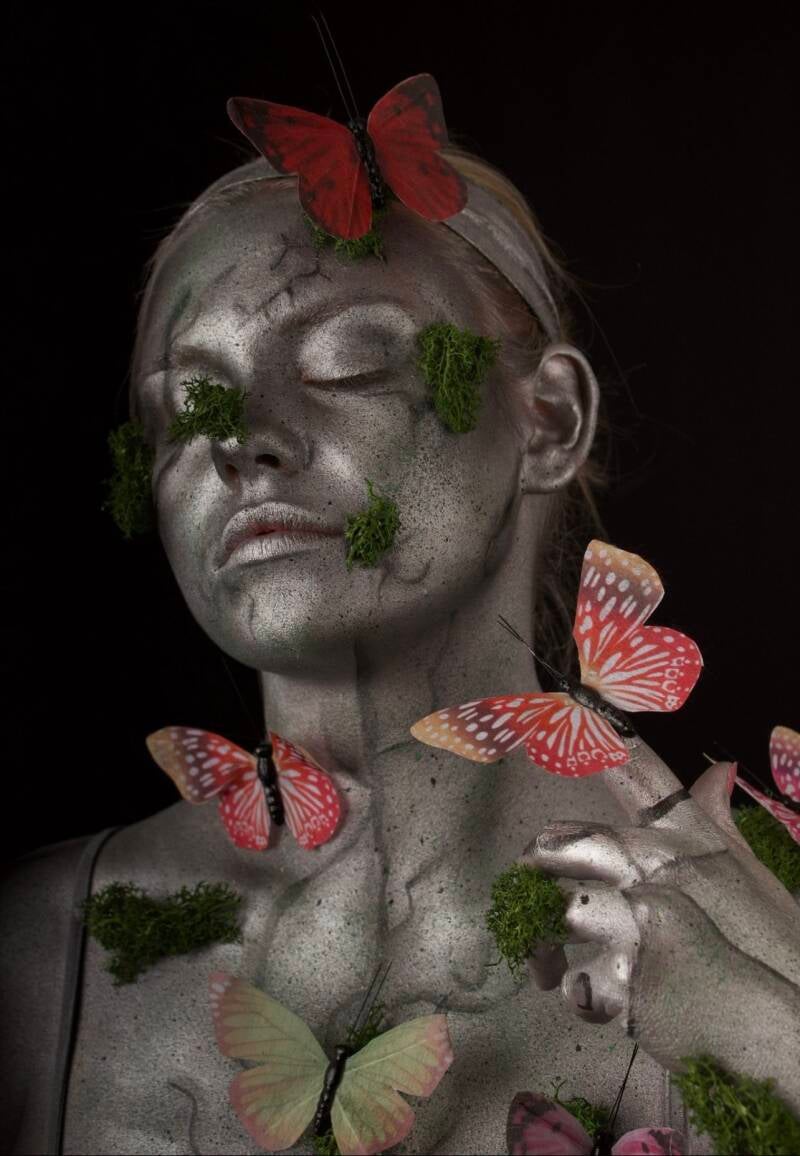 Deze bodypaint opdracht was gebaseerd op een standbeeld.